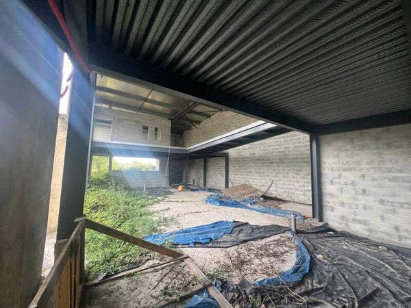 Hauteur sous poutres, environ 7 mètres - Local en bardage double peau et toiture Bac Acier double peau.